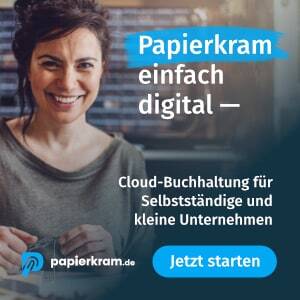 Papierkram.de ist ein einfach zu bedienendes Finanzbuchhaltungstool für Selbstständige, Freiberufler und kleine und mittlere Unternehmen. Mit Papierkram.de erledigt man Angebots- und Rechnungserstellung, UStVA und EÜR mit wenigen Klicks. Durch die integrierte Zeiterfassung können Arbeitszeiten komfortabel erfasst und direkt in Rechnungen überführt werden. Ein Kunden- und Lieferantenverzeichnis (CRM) und Module wie Bankabgleich, Cashflow, BWA, Projektverwaltung, DATEV-Export und ein Posteingang für Belege runden die Software ab.